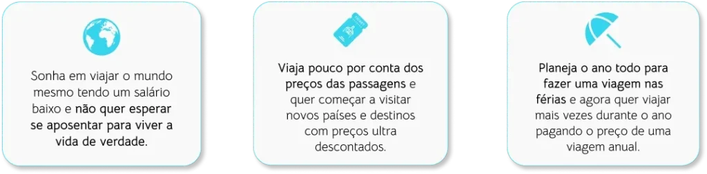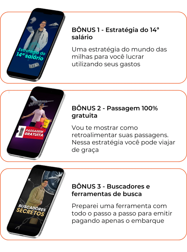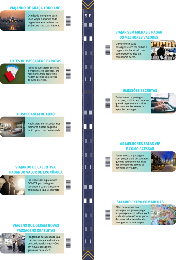 O objetivo é fazer você economizar 90% nas suas viagens. Aplicando o Método, você poderá fazer voos nacionais e internacionais, pagando deR$300 a R$600 da taxa de embarque